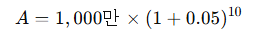 초기 투자금 1,000만 원, 연 이율 5%, 투자 기간 10년일 경우