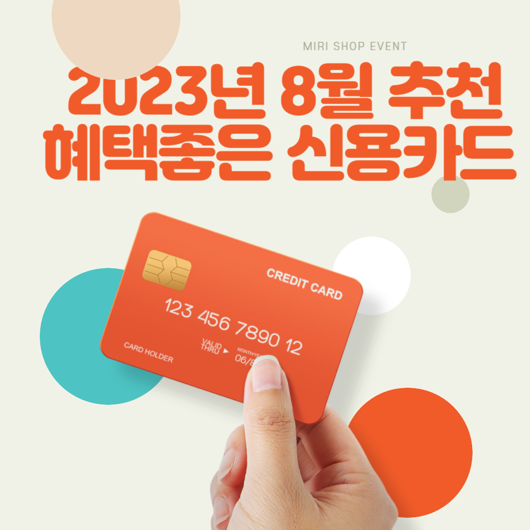 어느새 7월이 지나고 더위가 한창 기승을 부릴 8월에 접어들었습니다. 본격적인 휴가철이 시작되는 시기이고, 휴가철이 지나고 나면 금방 명절을 맞이하게 되어 지출이 점점 늘어날 일만 남았는데요. 가뜩이나 물가나 세금도 하루가 다르게 올라 힘들어지는 요즘 조금이라도 아끼는 지혜로운 소비가 필요한 시점입니다. 그리하여 7월 말을 기준으로 하여 월 최대 혜택 금액을 제공하는 신용카드를 추천드리려 하는데요. 보유하신 카드와 비교해 보고 지혜로운 선택을 하시길 바랍니다.